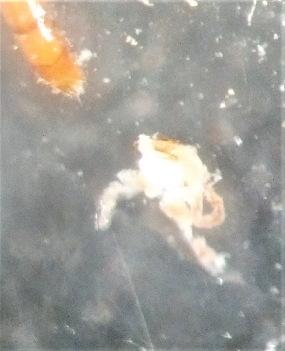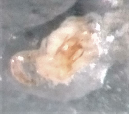 Bravo Marco, quello è proprio l'edeago Ora andrebbe pulito delicatamente con un pennellino dai tessuti connettivi non sclerificati che lo coprono. Forse se lo metti su fondo bianco lo vedi meglio, io lavoro su un cartellino di acetato trasparente appoggiato su un blocchetto di plastazote. Poi si include in una goccia di Euparal o DMHF possibilmente orientato come nei testi, direttamente sul cartellino di carta bianco dove incolli l'insetto o su uno di acetato a parte.