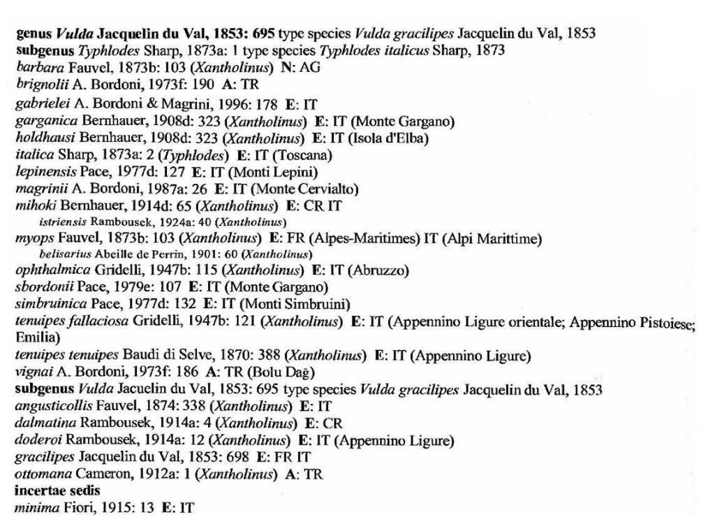 Io prenderei in considerazione anche Vulda (Typhlodes) gabrielei Bordoni & Magrini 1996, descritta del monte La Pelosa (Terni) con un paratipo del monte Subasio (Perugia). Proprio quest'ultima località non è poi così distante dal monte Cetona (...se non si parlasse di specie endogee).