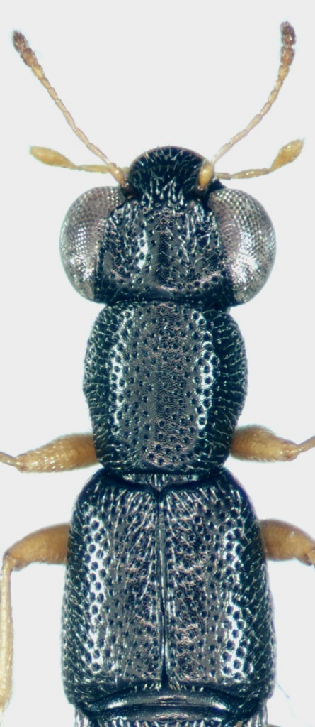 Gli Staphylinidae come questo mi ricordano sempre alcuni piccoli Carabidae, come gli Asaphidion. Forse per la lavorazione della cuticola, o per la forma della testa.