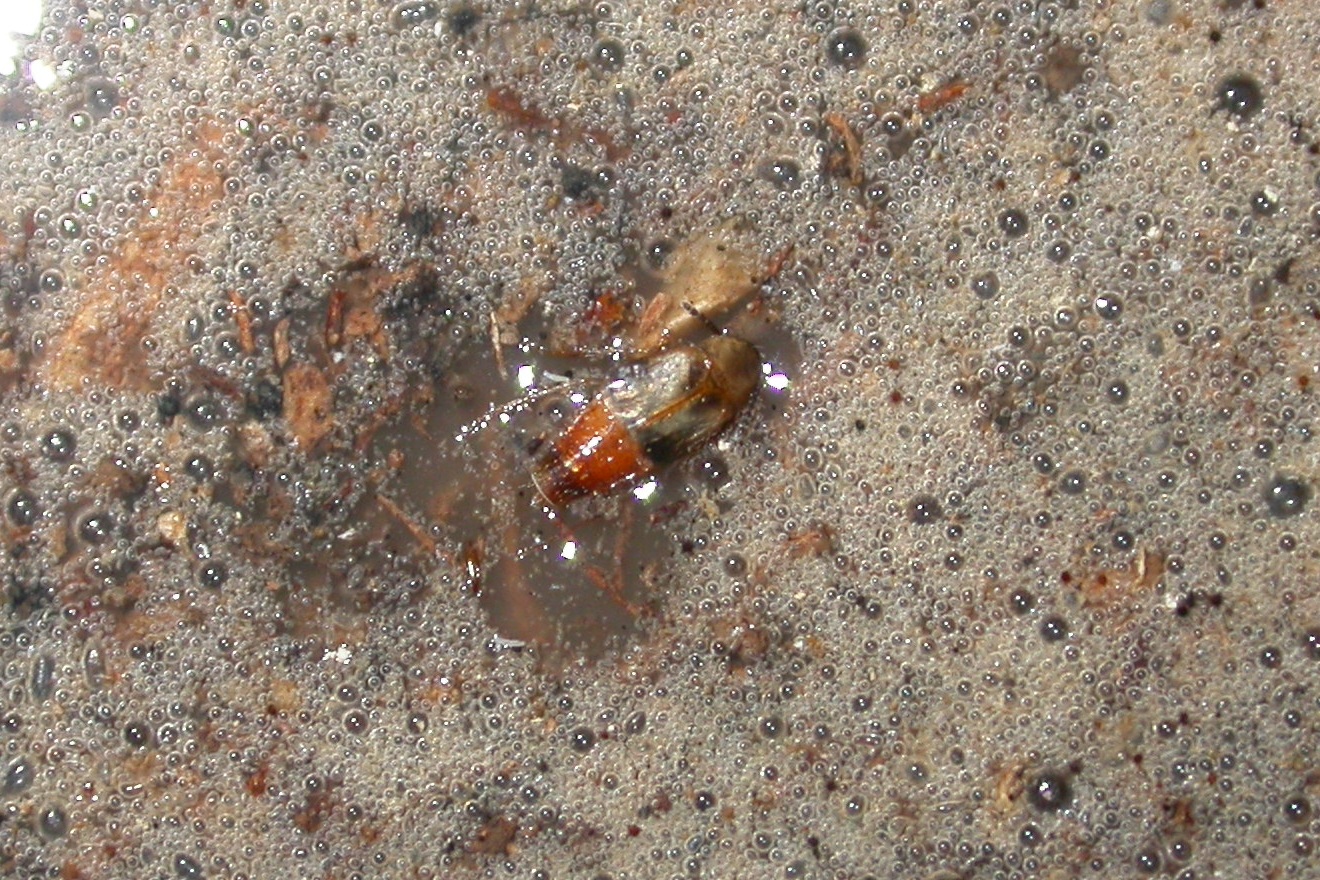 L'esemplare a galla nell'acqua del lavaggio: ovviamente è stato abbastanza facile notarlo:
