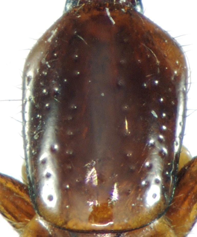 Questo Xantholinino è caduto in trappola insieme ad altri Staphylinidi. La suddetta trappola era al suolo, ai margini di un prato erboso, e conteneva aceto e succo di frutto (+ sale). Le antenne sembrano proprio da Hypnogyra angularis. Il capo è pressoché liscio, con dei finissimi puntini quasi impercettibili.