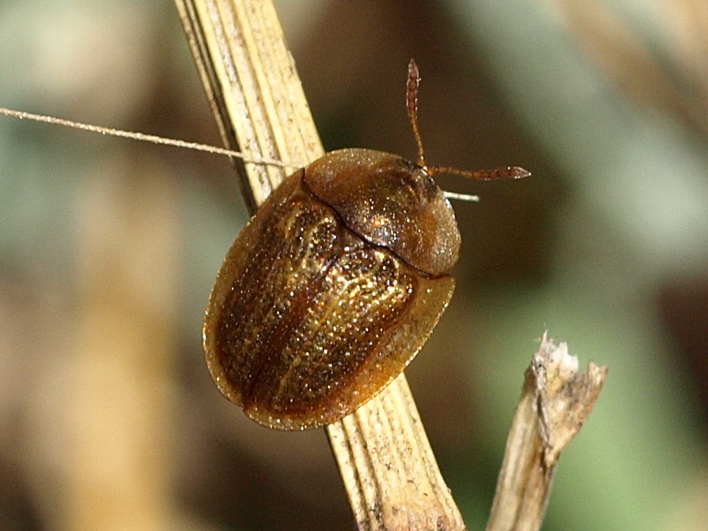 Piccola specie di Cassidinae, sui 4-5 mm, molto più attiva e miglior volatrice delle altre che vedo normalmente.