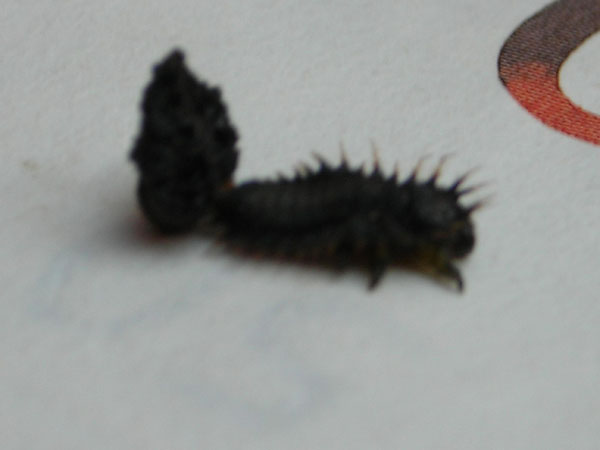 A propoisito di identificazione di Cassida. Sui monti della Tolfa, nell'alto Lazio, ho visto moltissime larve di Cassida di colore nero, che non avevo mai osservato. Ne ho portata qualcuna a casa con un po' di foglie di cardo e alcune si sono impupate, Puo' trattarsi di C. Alpina? Sono molte le specie di Cassida con larve nere?
