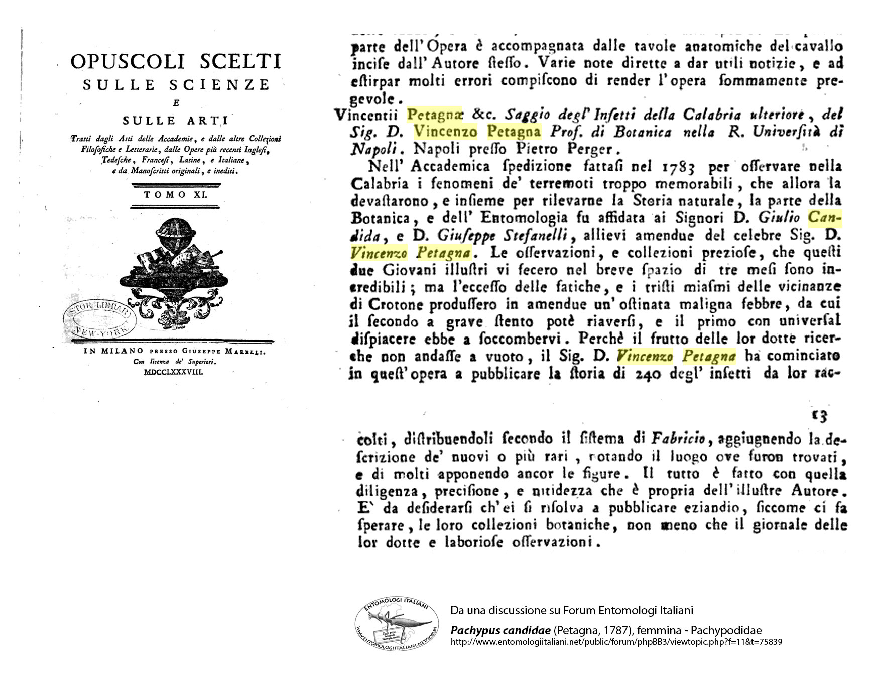 Sono partito ovviamente dall'anno di descrizione di questa bella specie (1786) e dal suo descrittore: Vincenzo Petagna (1730-1810), botanico, medico e notissimo entomologo napoletano.