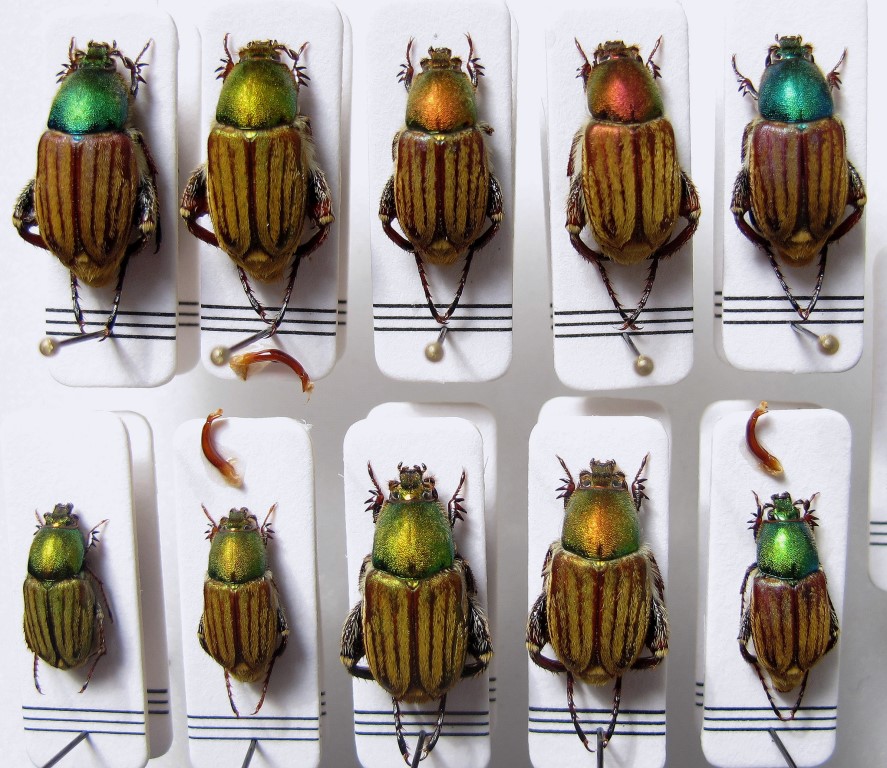 Ora che ho smistato e preparato alcuni degli esemplari raccolti, sono in grado di mostrare la variabilita sia di taglia che di colore in questa specie.