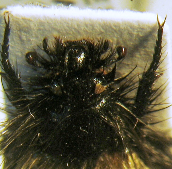- all the hair black, above and below, with sometimes bands of pale hairs on the elytra. Sides of the abdomen with black hair --> arctos armeniaca