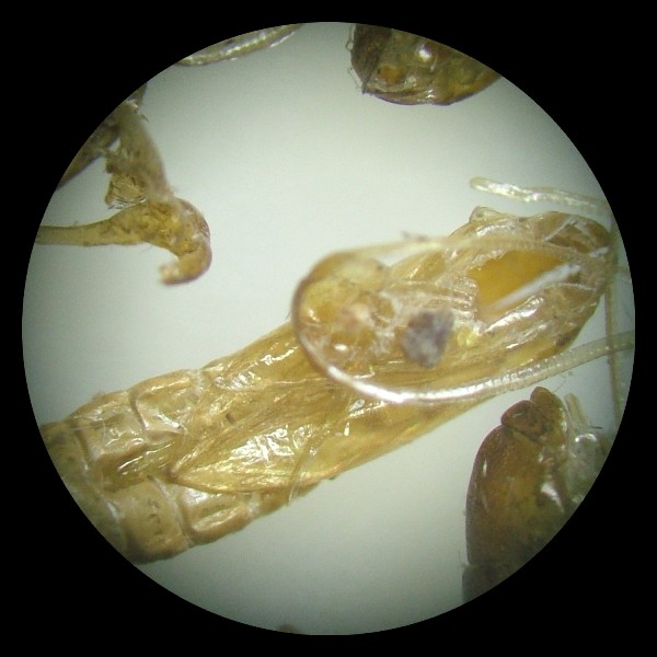 Oggi ero in provincia di Parma per alcune degustazioni ( ... Culatello di Zibello stagionato 24 mesi, prosciutto crudo di 34 mesi e qualche altra "robetta" niente male ... ). In una stanzetta lì vicino erano conservati tre-quattro insaccati "di scarto", in attesa di smaltimento, che attirarono ben presto la mia attenzione: c'era qualcosa, sopra, che mi pareva si muovesse... Lasciate per un momento le prelibatezze in analisi (per poco, neh!), ed acompagnato dalle battutine "spiritose" degli amici degustanti, ho voluto controllare da vicino: in effetti qualcosa c'era. Ho velocemente raccolto in po' di materiale per poterlo poi mettere sotto lo stereomic ... ed ecco qualche foto.