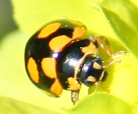 Assomiglia molto alla Propylea quatuordecimpunctata solo che tutte le foto che ho visto sono di esemplari con macchie nere su sfondo arancio, mentre questa ha le macchie arancio su sfondo nero! :?