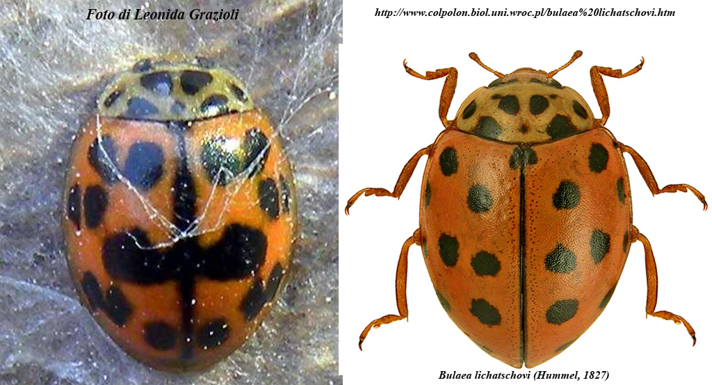 La Bulaea lichatschovi del sito russo, oltre a somigliare molto ai tuoi esemplari somiglia altrettanto a numerose foto di Oenopia conglobata presenti sul Web, come questa, sullo stesso sito russo, o quest'altra.
