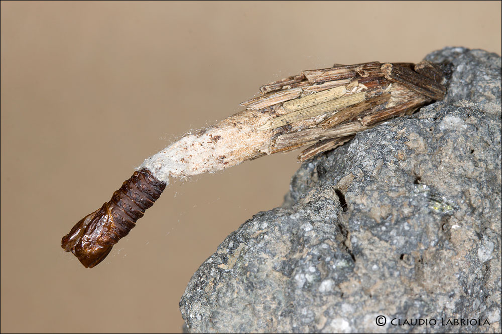 Di seguito le foto dell'astuccio con la crisalide fuoriuscita durante lo sfarfallamento ...