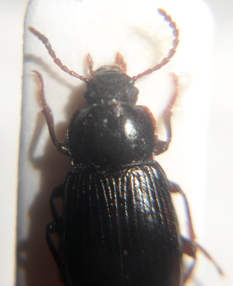 Questo Tenebrionide l'ho raccolto a pochi centimetri da questo Carabide, a prima vista credevo fossero due Carabidi della stessa specie. Controllando meglio mi sono accorto che questo era un Tenebrionide.