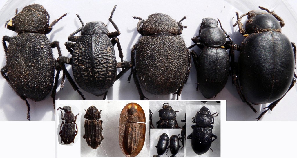 Nelle foto piccole abbiamo nell'ordine: una Adelostoma, una cosa che non capisco cosa sia, un bellissimo Cossyphus, e poi due Dendarus e due Opatroides.