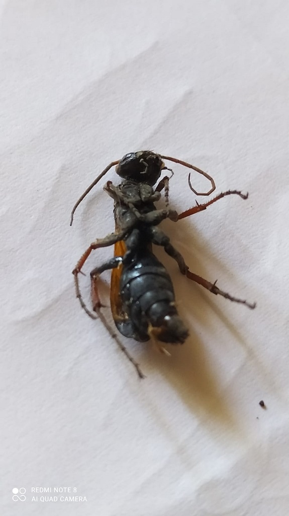 Non ho esperienza con specie di questo gruppo e la possibilità che sia un Pompilidae (come scritto nel titolo) è assai bislacca (da parte mia) e porgo le mie scuse a tutti.