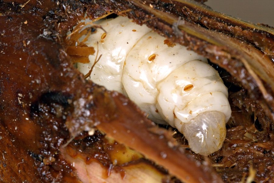 Quando le larve percorrono in lunghezza i fusti esili di queste palme e raggiungono l'apice vegetativo, distruggendolo, l'infestazione diventa letale per la pianta.