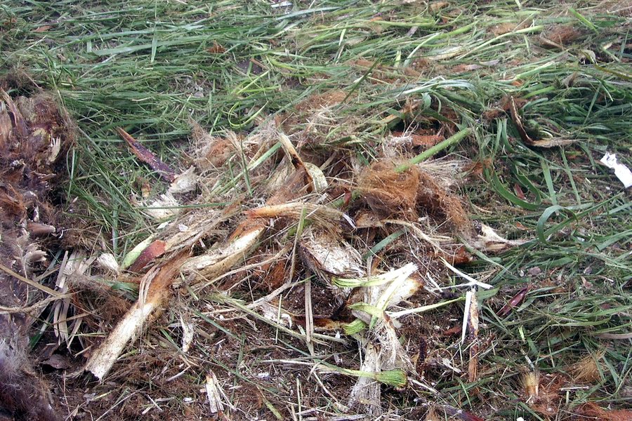 Inoltre vorrei offrire elementi di riconoscimento di un'infestazione da Paysandisia, affinchè chi dovesse osservarli può segnalare il ritrovamento ai SFR competenti per territorio. Credo che la cosa sia utile a chi voglia provare a raccogliere larve o crisalidi per ottenere lo "sfarfallamento". Vi rammento però che l'adulto non può essere diffuso.