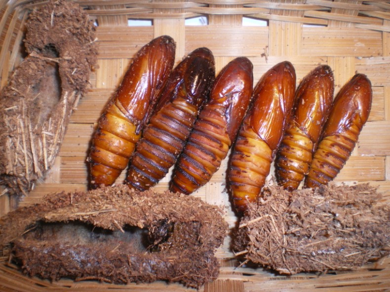 questa volta mi sono portato via una brattea fogliarie morta dove alloggiare le due larve, ed ho raccolto anche tre bozzoli ed una pupa (che verranno immediatamente soppressi allo sfarfallamento :dead: ).