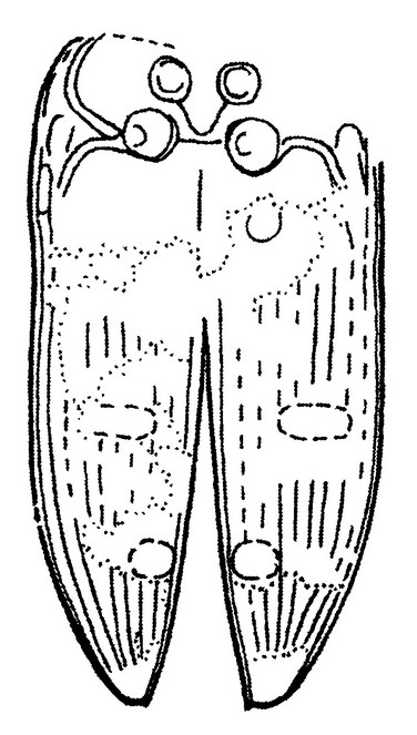 La caratteristica che si vede bene sono le due macchie (o fossette) nella seconda metà di ogni elitra. Il problema è che una bestia così antica potrebbe non avere parenti stretti nella Fauna attuale, per non parlare del fatto che possiamo anche fare poco affidamento sull'attuale distribuzione geografica dei vari generi.