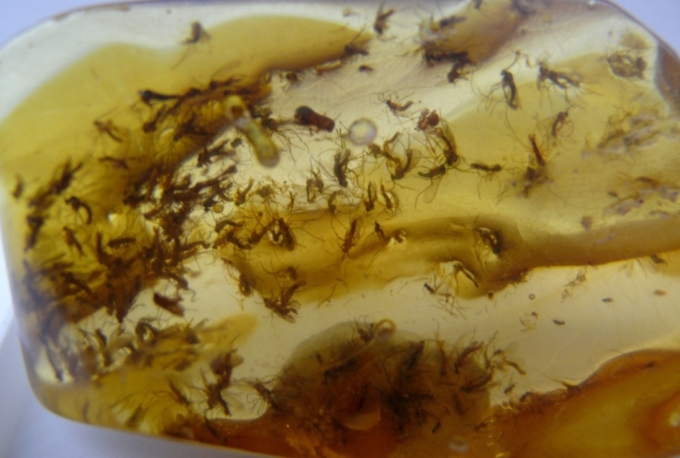 Altri tipi di moriade d'insetti nel copale del Madagascar: 1) Imenotteri; 2) Ditteri; 3) Ditteri; In questi casi gli insetti sono molto piccoli e si possono trovare anche 100-200 esemplari in un unico campione di copale. Mi fermo altrimenti vado fuori argomento!!!  Maurizio!