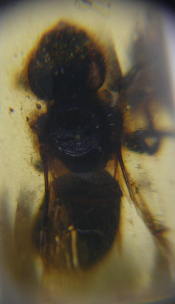 Ho in collezione questo campione di copale e al suo interno ho trovato questo Apidae sp. (Imenottero)(1,0 cm).