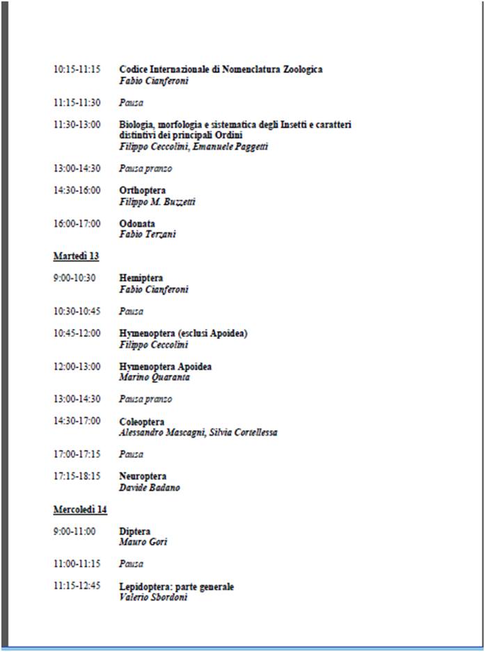 Oggetto del messaggio: CORSO SISTEMATICA INSETTI FIRENZE