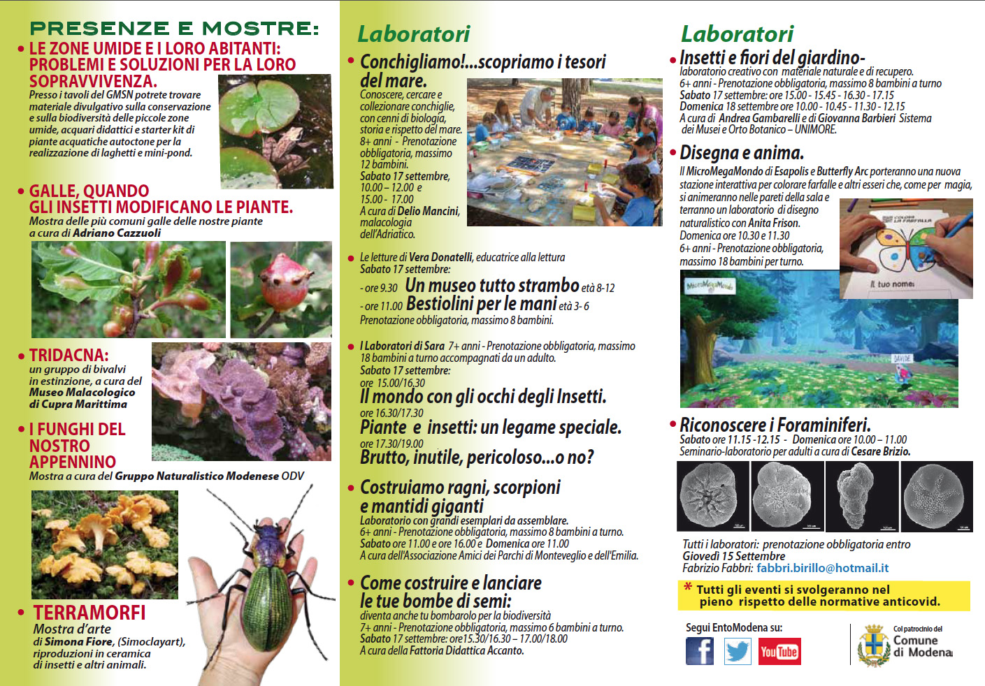 Cari amici del forum, condivido con piacere il programma di Entomodena di settembre (il pdf dopo le immagini). Se qualcuno mi cercasse, avrò un piccolo banchetto, soprattutto per distribuire il materiale che ho da determinare e per raccogliere quello determinato, accumulato in diverse edizioni di assenza. In più, distribuirò un questionario che abbiamo sviluppato con Stefano Mammola, ricercatore del CNR, per valutare l'estinzione/declino degi insetti in Italia e quantificare i dati disponibili presenti nelle collezioni, taccuini e memorie degli entomologi "dilettanti", che, come sappiamo bene qui, sono figure preziosissime per monitorare l'andamento della comunità di insetti. Questo con lo scopo ulteriore di valorizzare queste conoscenze e documentare anche il declino di chi gli insetti li studia, oltre che degli insetti. Invito tutti a partecipare, la compilazione del questionario può essere fatta comodamente a casa! Chi vuole poi, sempre su questo tema, può venire a seguire le conferenze, molte proprio sul tema della conservazione degli insetti.
