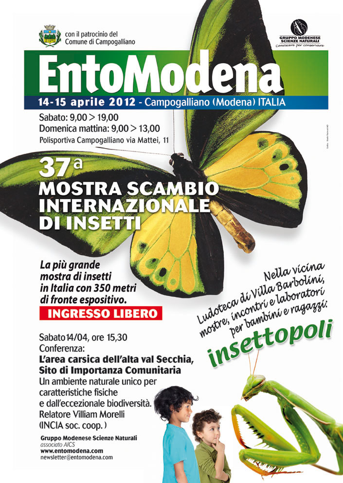 Anche quest'anno manca ormai poco più di un mese all'appuntamento di Entomodena, e ci saranno alcune iniziative in più dell'anno scorso, soprattutto di carattere didattico e divulgativo, curate da Butterfly Arc e da alcuni curatori di Esapolis che porteranno anche alcune teche con insetti e aracnidi vivi, quindi chi ha bambini può essere sicuro che troveranno il loro bel da farsi :ok: . Invito tutti a visitare quindi gli incontri organizzati a villa Barbolini (lo stabile di fianco a Entomodena dove c'è anche il bar) con conferenze e nel piano inferiore appunto i laboratori didattici.