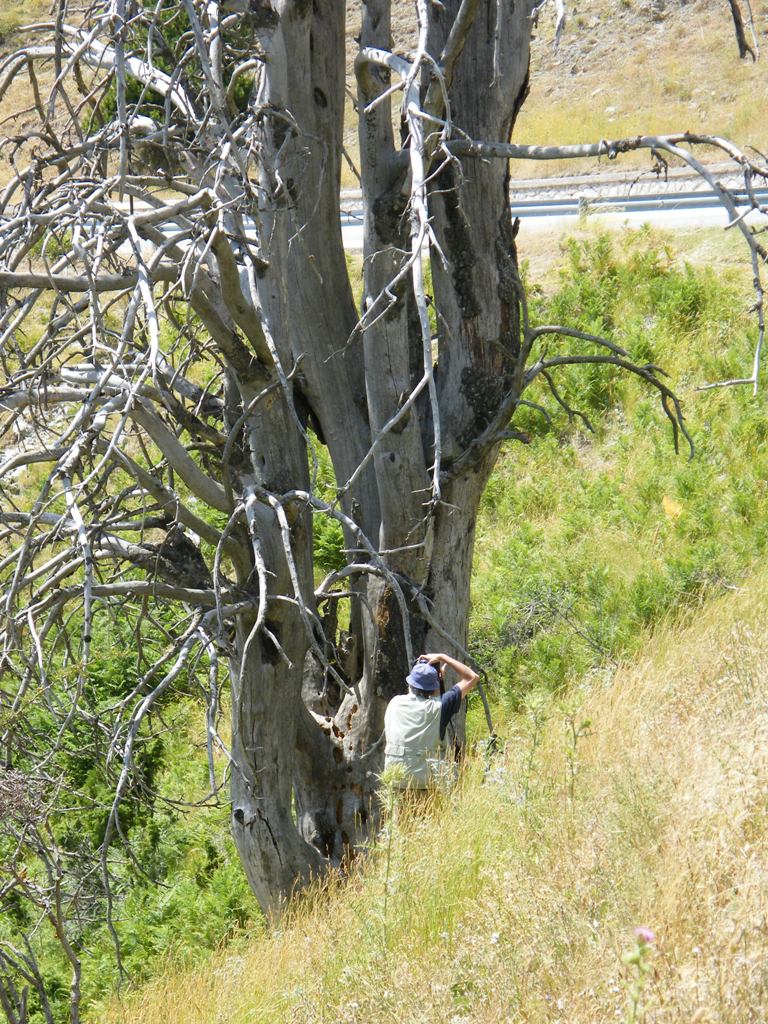 Andrea Liberto che fotografa un grosso P. heldreichii morto.
