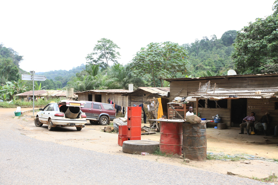 Giusto per passare il tempo osservo la nostra corsa con il GPS e confronto velocità con strada da fare e calcola che calcola, non possiamo arrivare a Makokou prima delle 21:00. Non che vi fossero problemi, ma all nostro arrivo a Ipassa non è organizzata nessuna cena quindi avremmo dovuto fare la spesa in uno dei Ck2, soltanto che alle nove di sera, probabilmente avremmo trovato tutto chiuso. Per chi non fosse pratico, “secado” è una famosa catena francese di supermercati, e si trova anche in Gabon. Quindi si decide di fermarsi nel primo villaggio e di fare provviste. Le macchine rallentano in vista ad un gruppetto di case, e ci accorgiamo che si sta già facendo buio. Chiediamo e ci facciamo indicare il negozio. Sui pochi scaffali in legno sono disposte diverse scatole di latta con tonno, sgombro, paté di fegato e pollo. Qualche confezione di biscotti, alcune bibite, pan carré, carta igienica, sapone e polvere contro i pidocchi. Hanno poco ma l’essenziale. Ognuno di noi fa le sue provviste e torniamo in macchina. All’uscita del villaggio, l’ennesimo posto di blocco, controllo dei documenti, le medesime domande, e identiche risposte. Ormai è diventata routine, perché lungo tutto il percorso ad ogni passaggio di provincia abbiamo trovato questi controlli.