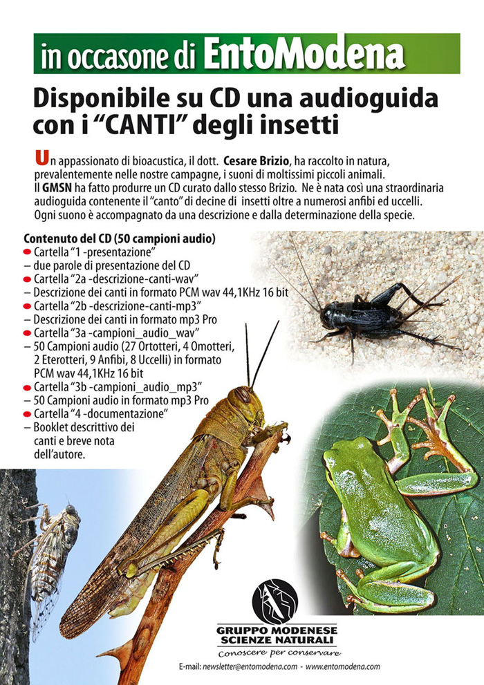 Avevo programmato, come al solito, di far visita a mia madre (ancora in Emilia) in occasione di Entomodena così da poter essere della partita almeno per il sabato. Purtroppo un lutto ed un funerale mi costringono ad anticipare il viaggio a questa settimana precludendomi la partecipazione. Mi è infatti impossibile sia trattenermi sia ritornare in zona così presto.