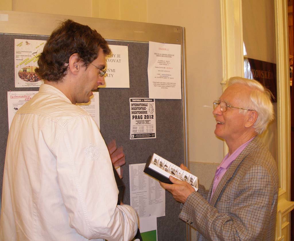 Si è tenuta a Praga nei giorni 1 e 2 ottobre la consueta Borsa degli Insetti (analoga a Entomodena). Ero là, con i fratelli Ivan e Pierpaolo Rapuzzi, Daniele Baiocchi e con altri entomologi italiani (mi ricordo di aver intravvisto Pederzani, Casale, Cavazzuti, Grottolo, Cassola, ed altri. Propongo alcune immagini con entomologi di varie nazionalità. Antonin Wrzecionko & Tomas Tichy (Repubblica Ceca) David Wrase (Germania, specialista di Carabidae) Il sottoscritto con Carolus Holzschuh (Austria, specialista di Cerambycidae) Il sottoscritto con Maxwell Barclay del British Museum; foto scattata al Museo di Storia Naturale di Praga Il giapponese in rosa Emil Kucera Un quartetto eterogeneo (polacchi, cechi e ungheresi); da sinistra il polacco Jacek Hilszczanski, Mr. X, Nikola Rahmé (Ungheria), Edvárd Mizsei