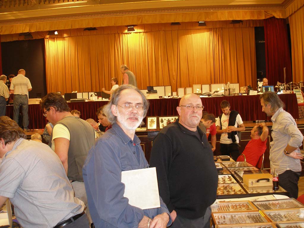 Manfred Egger (Austria) e Pierpaolo Rapuzzi (Xylosteus) alle prese con un espositore tailandese (aveva, fra l'altro, Lucanidi a buon mercato) G. Novak e signora (Germania) (Buprestidae) P. Cate (Elateridae) S. Murzin (Russia) Con Petr Kabatek (Repubblica Ceca, Cerambycidae) Con Petr Svache (Repubblica ceca, il maggior esperto mondiale di larve di Cerambycidae e di sistematica della stessa famiglia)