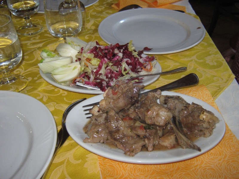 Ecco il locale con un bellismo leccio davanti all'ingresso Il locale è tutto per noi, c'è molta tranquillità e possiamo conversare amabilmente. A tavola riprendiamo le parvenze di esseri umani normali, ebbene si anche gli entomologi si nutrono! Tutta cucina casereccia, ai commensali l'ardua sentenza... Non ho fatto in tempo a fotografare qualche portata...