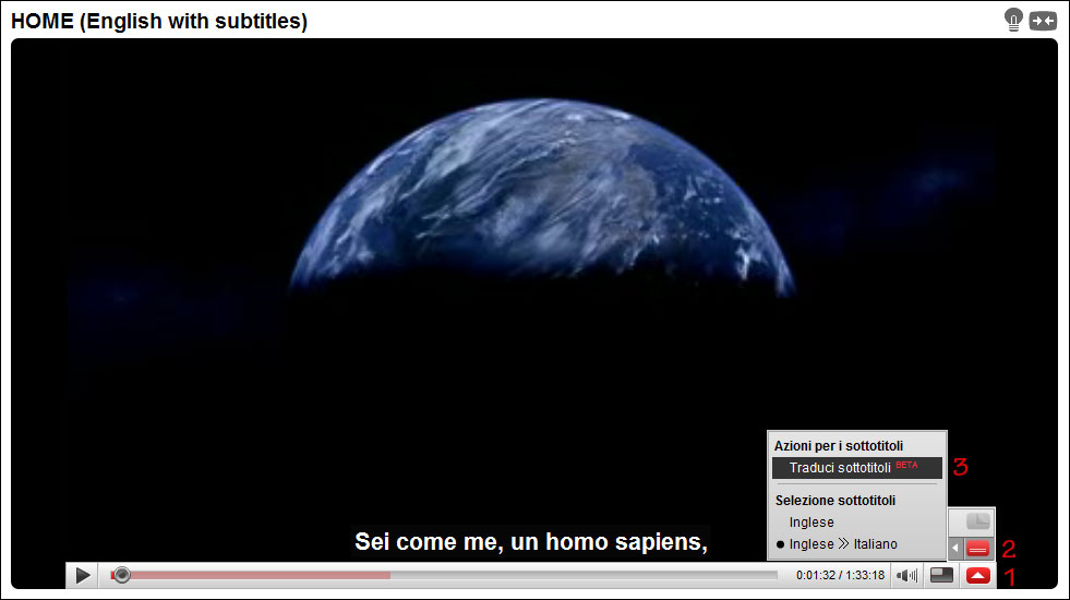 Per chi come me se la cava poco con la lingua inglese può attivare i sottotitoli italiani seguendo questi semplicissimi passi. Una volta caricata la pagina del film su