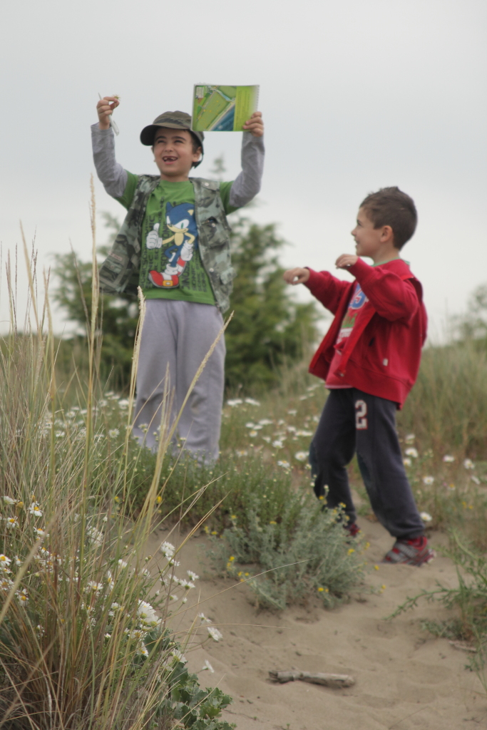 C'erano le Cylindera trisignata? Di solito stanno sulla sabbia umida presso la foce del fosso, vicino a dove Agostino sta giocherellando col formicaleone.