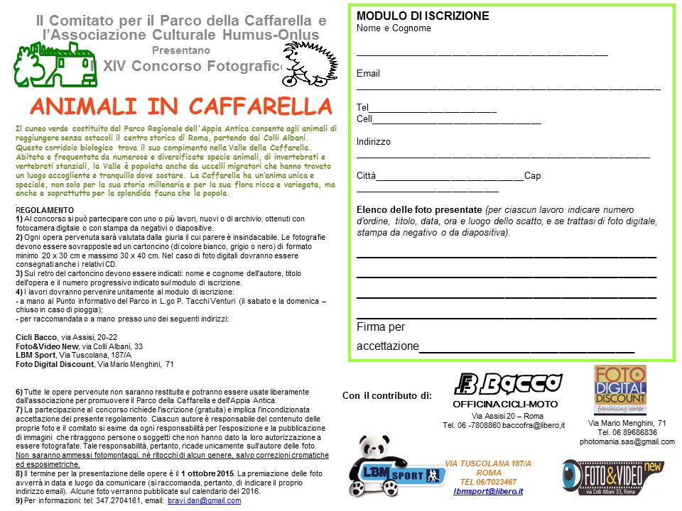 | Oggetto del messaggio: | bando romano per fotografi naturalistici |