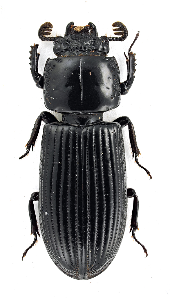 Penso Passalus (s.str., sez. Phoroneus) glaberrimus Eschscholtz, 1829 Ha corno e tubercoli parietali molto ridotti e la punteggiatura ai lati del pronoto grossolana e ben evidente. |