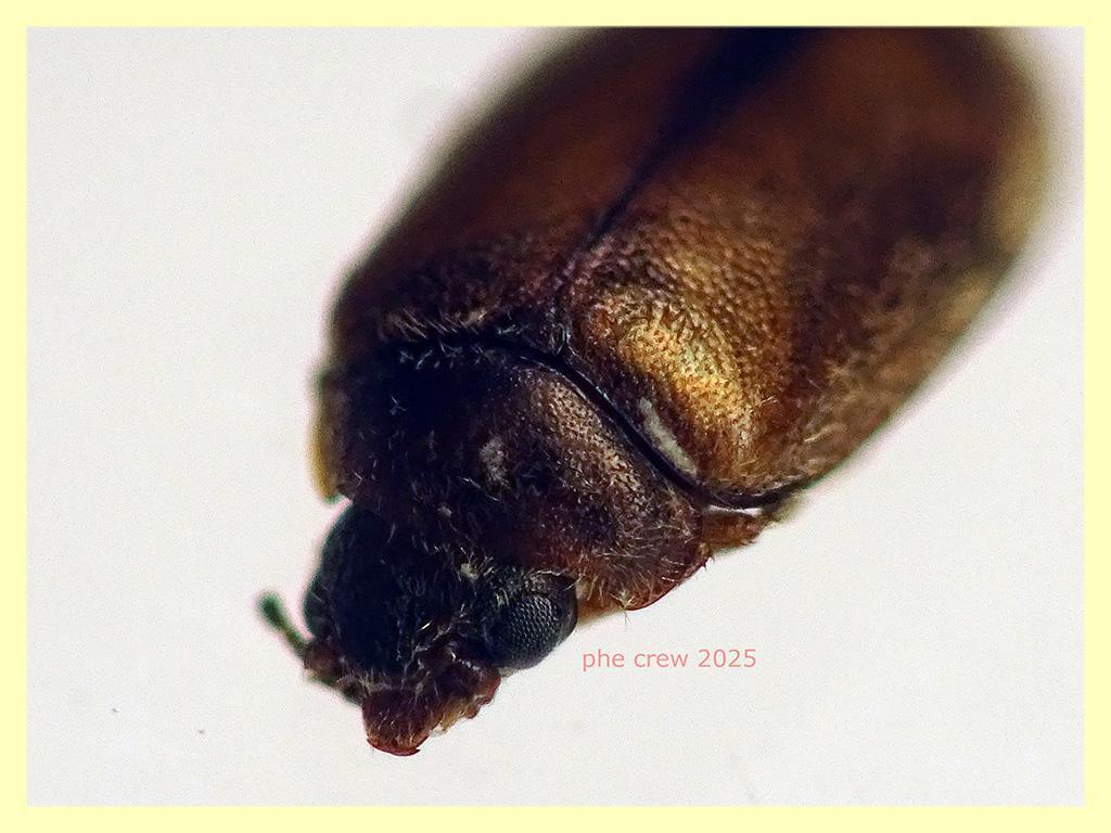 ...esemplare malconcio morto in pozzanghera di zolfo. Poi con una manovra azzardata lo stavo per disintegrare del tutto :dead: Sono quasi riuscito a tirar fuori tutte le parti degli ultimi sterniti...ma si riconosce bene (per fortuna e' abbastanza caratteristico) la specie Contacyphon phragmiteticola che adesso si dovrebbe chiamare Contacyphon laevipennis. La misura la si vede nella prima foto col righello. :hi: