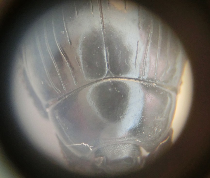 Qui mi servirebbe una foto dall'alto, dove si vedano bene il capo e le mandibole. E anche una laterale dove si vedano chiaramente la laterale del pronoto e la subomerale delle elitre. Dovresti anche confermarmi se c'è alla base delle elitre un piccolo arco di stria (rudimento della 5ª dorsale) rivolto verso la suturale. In attesa di quanto sopra, da quello che riesco a vedere, sarei ben felice di dire (con mooolta cautela! )Margarinotus (Grammostethus) ruficornis (Grimm, 1852) Histeridae, Histerinae, Histerini Se fosse lui, sarebbe davvero un gran bel colpo!