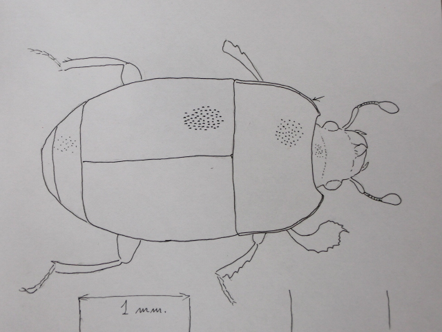 Inferiormente il ventre presenta una punteggiatura fine e fitta ma non uniforme, un pò più grossolana in una ristretta regione triangolare prosima al margine elitrale, relativamente fine sul pigidio.