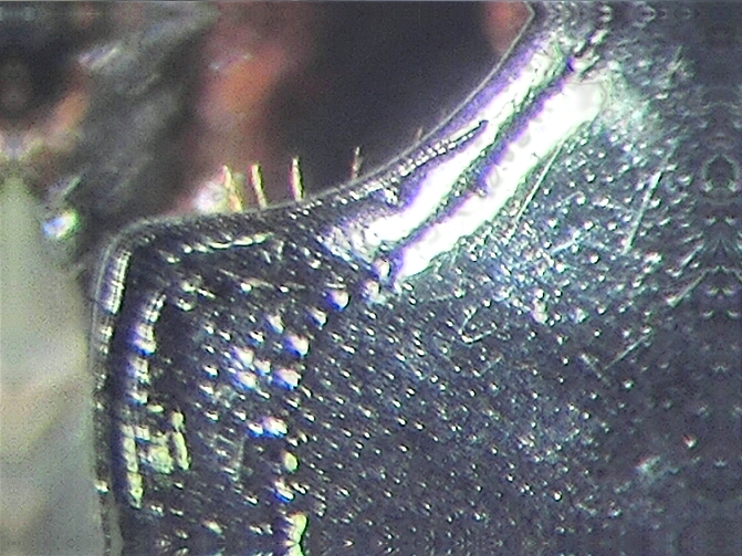 Caro Giovanni, da queste tre foto mi sembra si possa concludere che la stria laterale più interna (più lontana dal margine) continua senza interruzione passando dietro la base del capo. La stria laterale prossimale al margine si interrompe circa all’altezza dell’angolo anteriore del pronoto, formando una piccola curva. La stria marginale supera quest’angolo e prosegue per un breve tratto lungo il margine anteriore del pronoto, ma si interrompe a circa un terzo della lunghezza di questo, con un’estremità visibile anche perchè lievemente obliqua. Se tutto ciò non risulta chiaro dalle foto, è quanto ho potuto osservare al binoculare. Sperando di essere stato chiaro e esauriente, ti saluto e ti ringrazio di nuovo. Paolo |