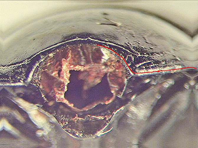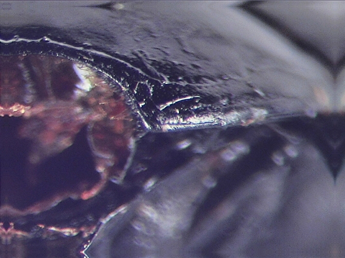 Il risultato sono le foto che accludo, da cui (e dalle mie osservazioni al binoculare) risulterebbe che la marginale si interrompe più o meno in corrispondenza dell’angolo anteriore del pronoto e perciò non passa dietro il capo.