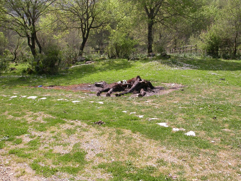 Un cavallo morto, penso da alcuni mesi, si stava decomponendo nel prato