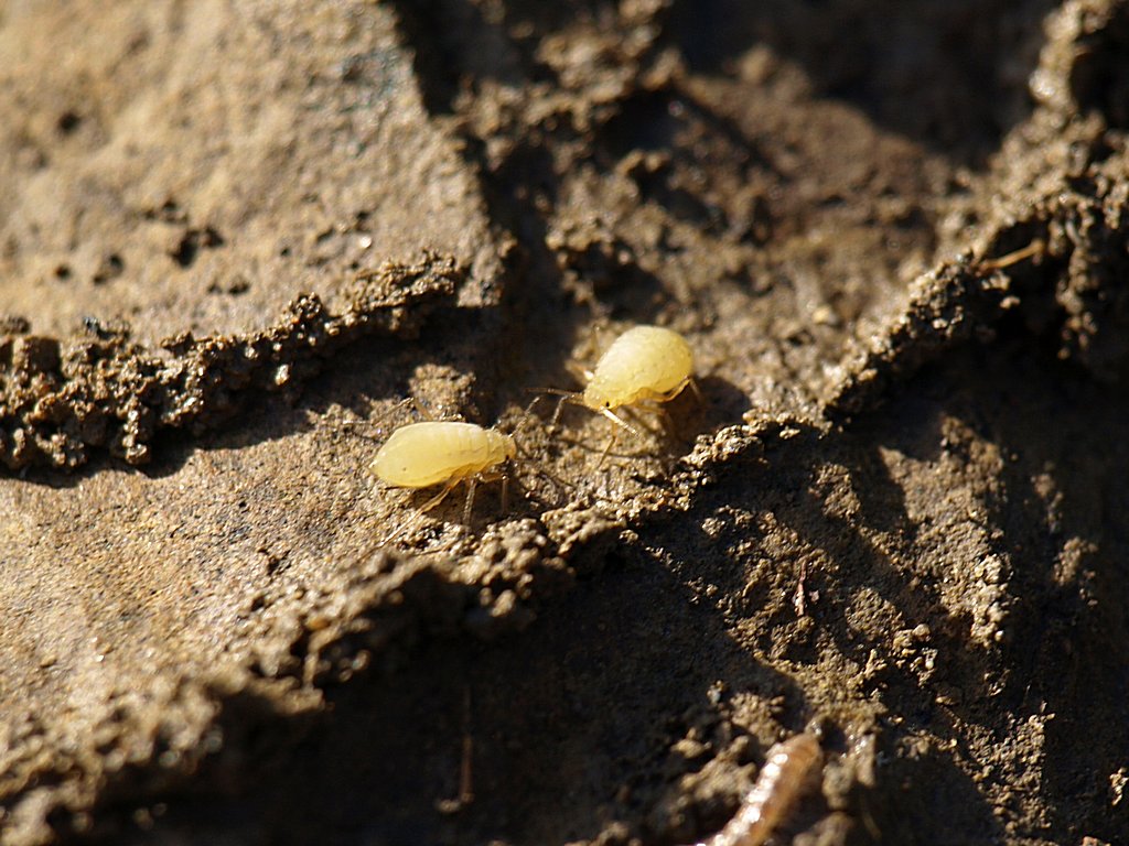 Anche qui il terreno è intriso d'acqua, e si trova ben poco, tanto che, per disperazione, mi metto a fotografare perfino questi grossi afidi trovati sotto una pietra in associazione con le formiche.