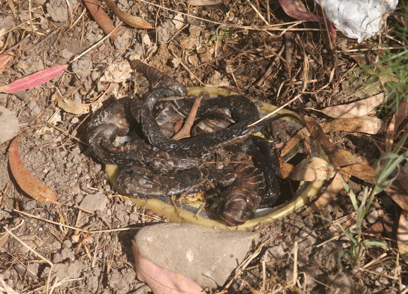 Presumo che la bestiola scagliosa se ne stesse comodamente su un sentiero a godersi del caldo sole estivo....fino a quando, il solito cretino di turno, terrorizzato dalle potenzialità venefiche del mostro ( :? ) abbia astutamente eliminato il povero animale gettandolo poi lontano.....in un piccolo rio asciutto, profondamente incassato tra due alte sponde.