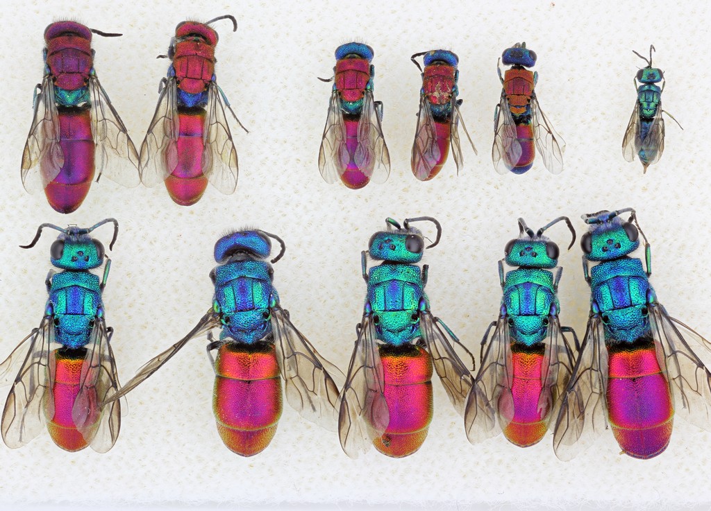 Trichrysis cyanea l'ultima a destra della prima fila.