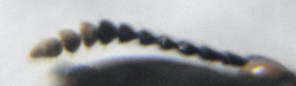 Ma si distingue facilmente per le antenne che invece di presentare gli ultimi 4 articoli ingranditi a formare una clava presentano gli ultimi 5 articoli(a partire dal settimo) leggermente più grandi degli altri.