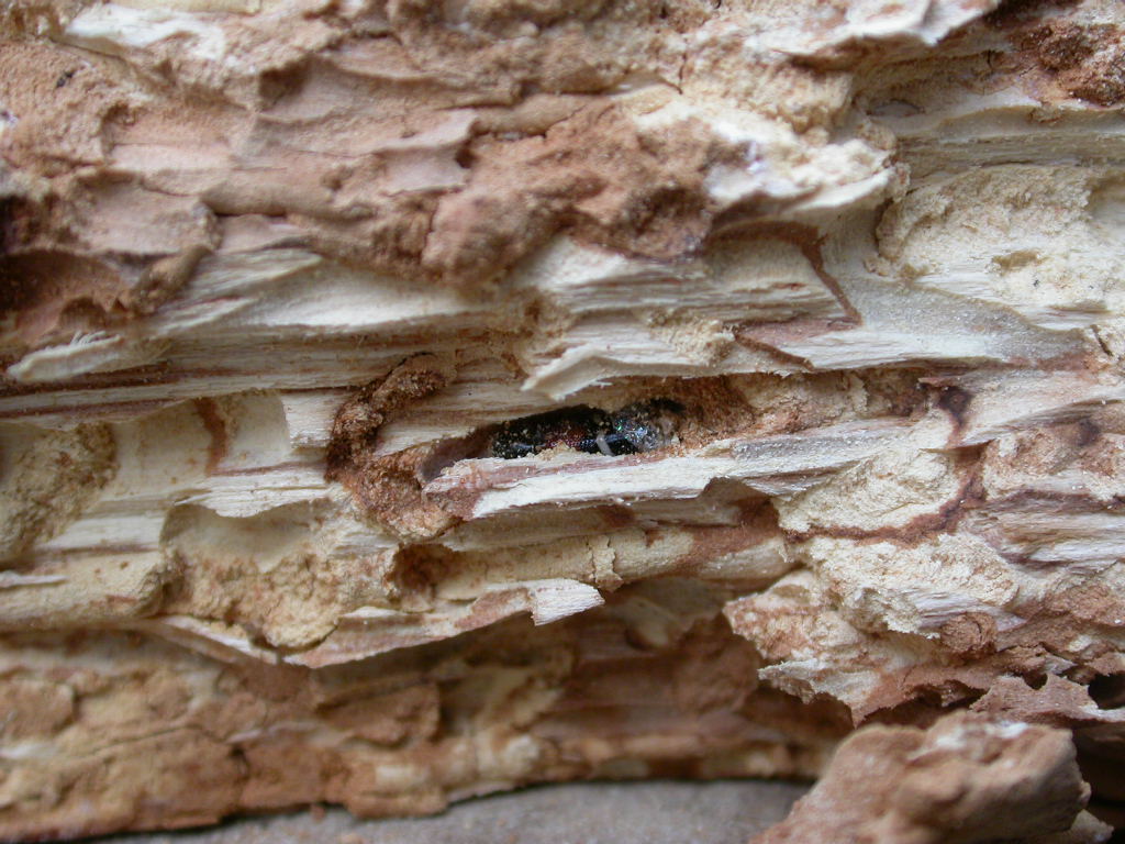 Da alcuni tronchetti di leccio massicciamente attaccati da xilofagi (bostricidi e/o scolitidi) che avevo prelevato quest'anno (a maggio), ho trovato una decina di Tilloidea unifasciata, perfettamente formati nella celletta pupale: è la prima volta che trovo questa specie (che Iuri in mp mi ha determinato)!!