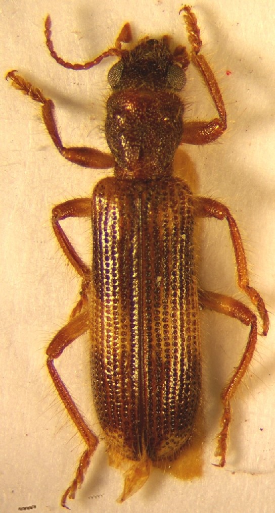 Anche a Lampedusa, come a Pantelleria, sembra essere presente Opilo domesticus, a giudicare da questo esemplare, trovato morto in un contenitore dove avevo tenuto rametti di Ficus carica portati con me da quell'isola.