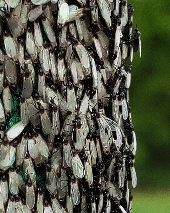 Ho letto dello sfarfallamento massivo di Bibio marci, ma non mi sembra proprio questa specie per via delle dimensioni più piccole (notare il paragone con lo spessore della rete). Inoltre, se in questa specie c'è lo stesso dimorfismo sessuale che esiste in B. marci, questi mi sembrano tutte femmine e mi incuriosisce ancora di più sapere il motivo di quella biomassa :lol: