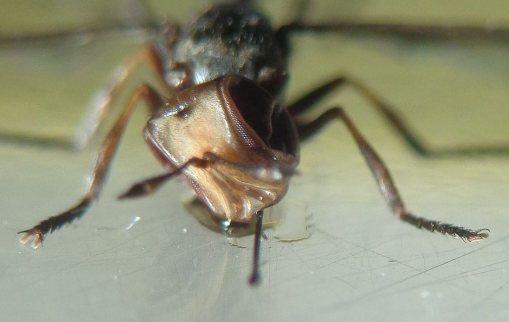 Potrebbe essere Physocephala sp.; nel caso una foto frontale sarebbe utile.